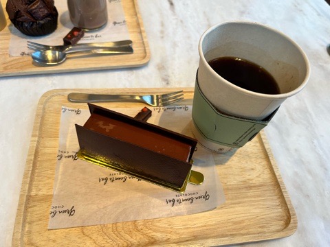 さすが、1000円する高級チョコレートケーキです( ^^) _U~~濃厚なほろ苦さもあり、甘みも程よくウマし(^^)/カカオの風味があり、香りもヨシ(*^-^*)ご褒美スイーツです♩♩